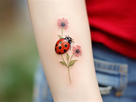 Flower With Ladybug Tattoo. Thinking about a ladybug tattoo? There’s something uniquely captivating about a ladybug nestled on a.