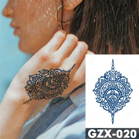 Waterproof Black Mandala Henna Flower Fake Tattoos Stickers Lotus Fake
