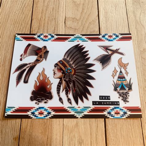 Native American Tattoo Flash Etsy